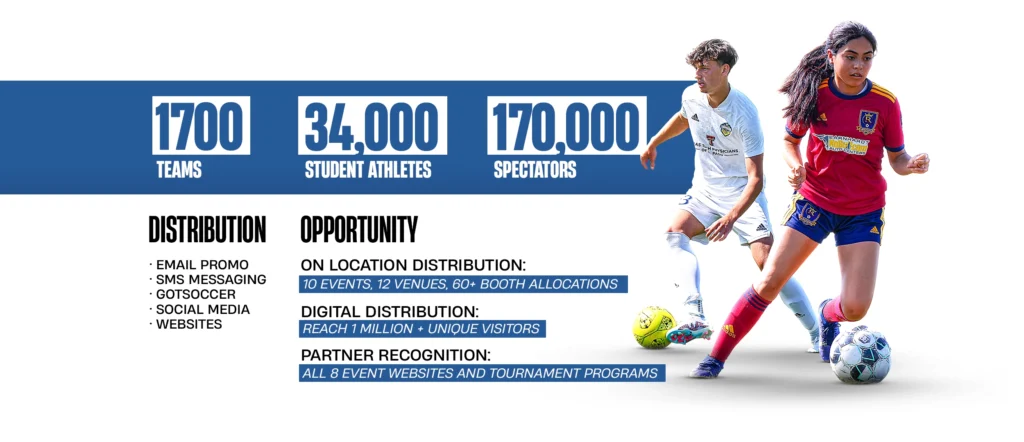 • Your logo featured across all social platforms, websites, newsletters, live streams, GotSoccer, and more.